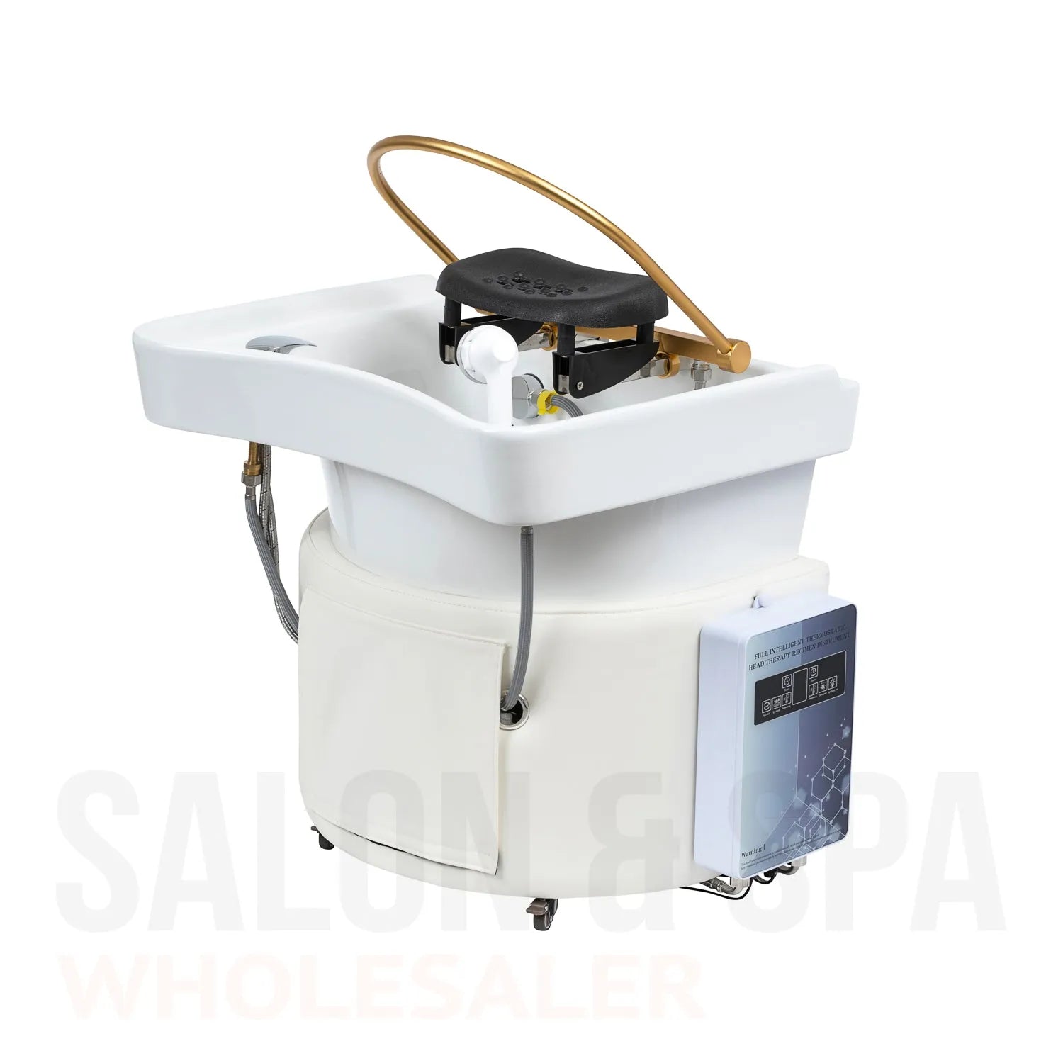 The SSW 6114NP Non-Portable Japanese Head Spa Shampoo Bowl - Plumbed is a fixed, salon-grade unit designed for consistent, high-quality head spa treatments. With a fully plumbed system, it delivers continuous water circulation and supports advanced scalp therapy with ergonomic head and neck support. Built with a durable ceramic bowl and sturdy metal frame, this unit is made for long-term use in busy professional settings. Included accessories, such as a fumigator and fumigation cap, expand treatment versatility, making it an excellent choice for salons offering elevated head spa services.