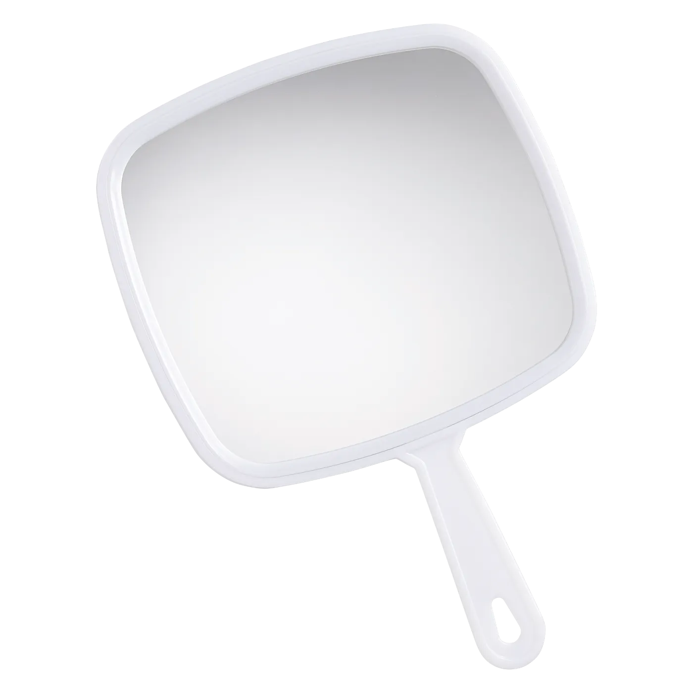 The Soft 'N Style Make-Up Mirror is a salon ready handheld mirror with a large viewing face, a shiny white frame, and a comfortable handle for everyday use. Ideal for stylists, makeup artists, and estheticians, it offers a clear client view for reveal moments and touch ups. A built in hang hole makes storage easy at any station.